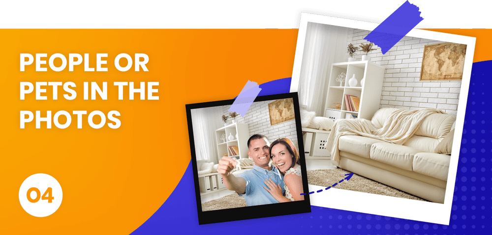 The main goal of prospective buyers is to focus on your property, not to check who or what resides in it. Although you love your pets and they are adorable, keep them out of your pictures. Not everyone loves pets or may be allergic, so including your pet in listing photos can negatively impact house hunters. They might worry about fur on the carpet, scratched floors, or nasty pet smells and stains.